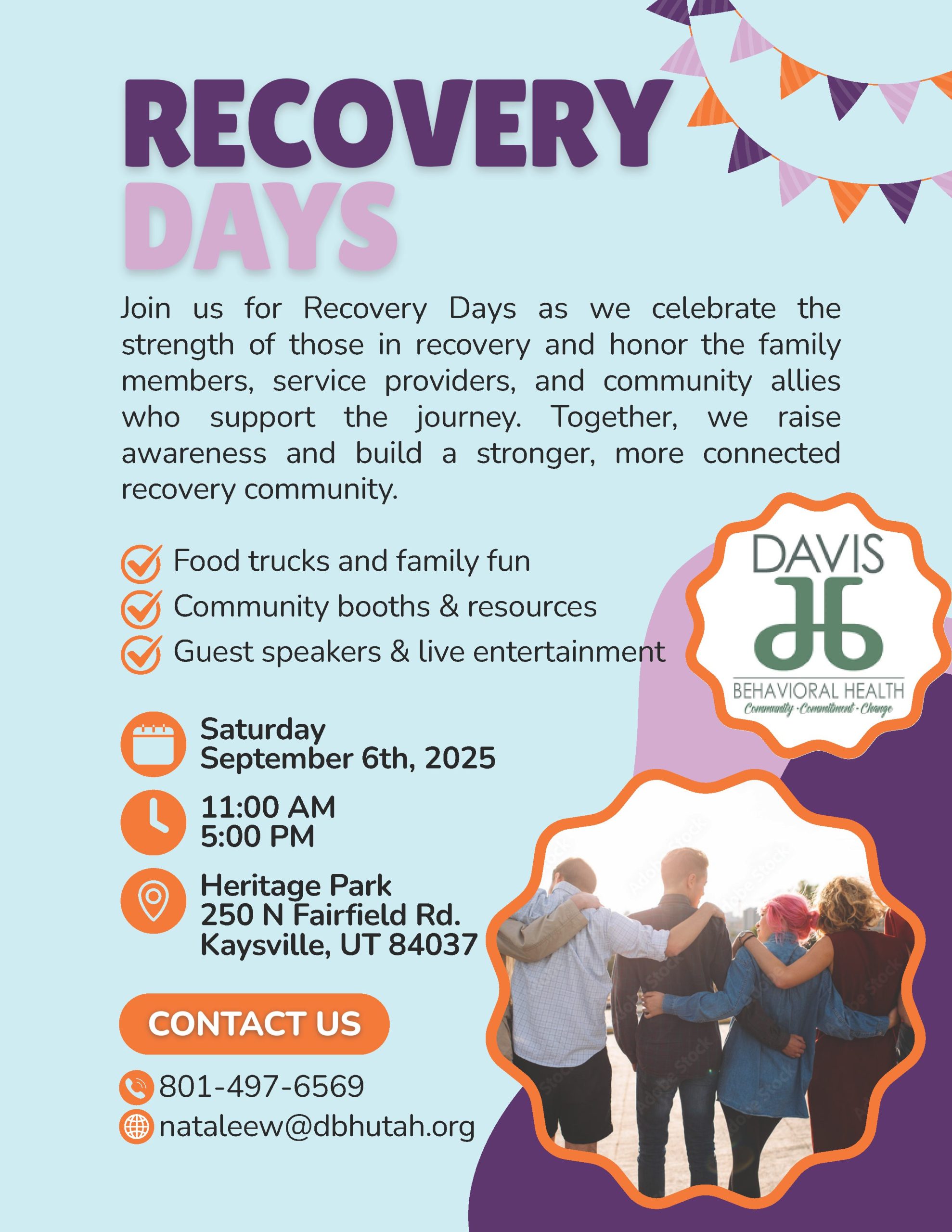 Saturday, September 20th from 4:00 PM – 8:00 PM at the Ogden Amphitheater For more information, contact Patrick Cox at patrick@utahrecovers.org or (385) 263-1600 x304